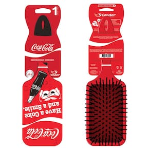 Condor e Coca-cola se juntaram para atualizar as definições de fashion da sua rotina de cuidados diários! A escova oval possui duas estampas atemporais super divertidas, que combinam tudo que o mundo Pop tem de melhor com a praticidade de uma escova almofada com pinos arredondados, que não machucam e massageam o couro cabeludo, facilitando a escovação. Seu formato oval é ideal para levar na bolsa e manter os cabelos maravilhosos em todos os lugares.