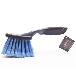 Detalhes da Escova Cabo Curto: Indicada para limpeza presentes na caixa de roda, possui cerdas macias que evitam riscos nas rodas, facilita e agiliza na limpeza de superfícies completamente sujas e de difícil acesso.