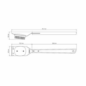 com Lâmina em Aço Inox e Cabo de Madeira 41,7 cm. Com esse utensílio a limpeza da grelha e dos espetos vai ficar muito mais fácil e prática devido às cerdas de aço inox, flexíveis e resistentes.