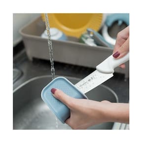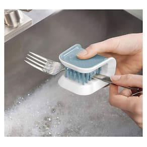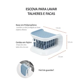 Escova para lavar talheres e facas. Muito mais segura que uma esponja comum, essa escova protege sua mao contra cortes e perfeita para lavar com maior segurança objetos afiados. Facil e rapido de usar, ela garante uma limpeza mais eficaz ao limpar os dois lados de uma só vez.
