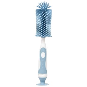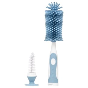 A Escova para Mamadeira E Bico da Buba é um acessório para limpeza 2 em 1, ideal para lavar garrafas e mamadeiras, pois atinge áreas difíceis de serem alcançadas. A escova possui cerdas macias e resistentes possibilitando uma perfeita higienização sem danificar o produto, sendo uma escova prática e eficiente para bico destacável que encaixa dentro do cabo da escova maior feita em silicone super macio, com um cabo antiderrapante e uma ventosa para mantem a escova em pé e evita que estrague ao apoiá-la na superfície.