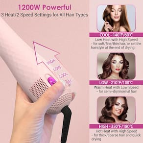 - 3 configurações de temperatura: a escova de secador de cabelo tem três configurações de controle de temperatura (alta/baixa/fria) com uma temperatura máxima de 120 °C, o aquecimento rápido de 30 segundos atende a várias necessidades, como alisamento, secagem e alisamento do cabelo