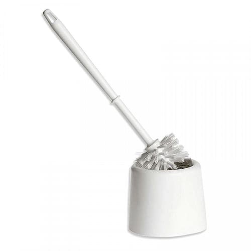 Escova Sanitária Redonda em plástico Branco contendo 01 escova para vaso sanitário e 01 suporte, redondos, facilitando o uso.