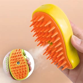Escova Autolimpante 3 Em 1 Para Pets a Vapor com Spray – Banho e Carinho em um Só Toque!