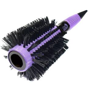 Com corpo de madeira e base metálica, cabo de emborrachado e cerdas mistas de nylon e pelo natural, finaliza alisamento, dando acabamento e tratando o córtex do cabelo, permite o cuidado com seus cabelos com suavidade, conferindo macies e brilho aos seus cabelos