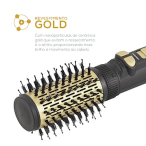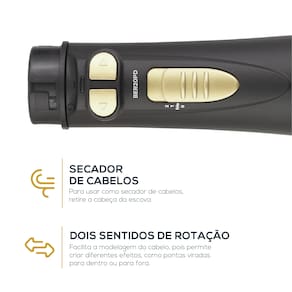 Com total versatilidade, ela se adapta ao seu estilo: são dois sentidos de rotação, duas velocidades e três níveis de temperatura, permitindo que você finalize diversos penteados com agilidade. Por ser um modelo 4 em 1, ela desempenha as funções de secar, alisar, escovar e modelar o volume, sendo a aliada ideal para qualquer ocasião. Além disso, o design conta com cordão giratório 360° de 1,80m e alça para pendurar, garantindo total liberdade de movimento e facilidade na hora de guardar.