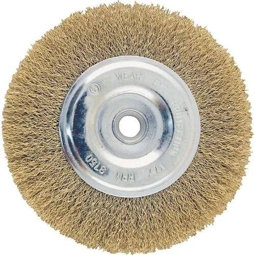 Escova rotativa latonada 6 x 1/2 furo 1/2 Escova de aço com cerdas flexíveis para limpeza de peças, remoção de ferrugens, vernizes e crostas de soldas sem danificar a peça obra.