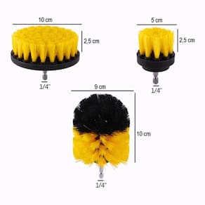 CARACTERÍSTICAS: - Encaixe universal para furadeira e parafusadeira - Possui acabamento niquelado - Material: Cerdas Nylon - Tamanho do conector da broca: 1/4 polegadas - RPM Máximo: 12.000 RPM - Tamanho: 5cm, 9cm e 10cm - Alta Resistência e Durabilidade - Cor: Amarela