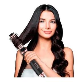 Características do produto: Revestimento cerâmico com tourmaline íon: emite íons que selam as cutículas dos fios, eliminando o arrepiado e proporcionando muito mais brilho e maciez. Potência de 1200w: potência de secador com a praticidade de uma escova. Duplo sentido de rotação: modela o cabelo para dentro ou para fora. 2 ajustes de temperatura e ar frio: proporcionam melhor desempenho durante a modelagem. Fácil de usar: selecione a temperatura desejada e escove os cabelos da raiz até as pontas acionando o botão de rotação para modelar.