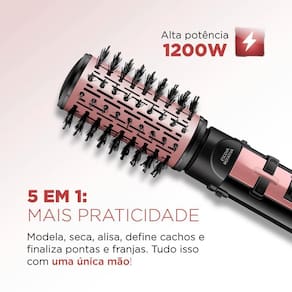Escova rotativa mondial black rose line 1200w er-10conheça toda a praticidade que você vai conquistar com a escova rotativa black rose ela é 5 em 1: seca, alisa, modela, define cachos e finaliza franjas e pontas. Você pode produzir o visual que desejar e ainda vai ter um cabelo mais saudável, brilhante e sem frizz, graças ao revestimento cerâmico com tourmaline íon. Imagens meramente ilustrativasEspecificações técnicas:modelo: er-10voltagem: 127v ou 220v não é um produto bivolt, verifique a voltagem desejada antes de finalizar a compra cores predominantes: golden rose e pretopotência: 1200wnúmero de velocidades: 3controle de temperatura: simcabo giratório: nãoníveis de temperaturas: 3funções: seca, alisa, modela, define cachos e estilizatecnologias: emite íonsrevestimento: cerâmica com tourmalinedescrição do produto:escova rotativa motorizada: a escova une o movimento rotativo, parecido com a escovação, com o calor do secador. E tem duplo sentido de rotação gira 360º nos dois sentidos, permitindo modelar o cabelo para dentro ou para fora.5 em 1: com um único produto, você seca, alisa, modela, define cachos e finaliza franjas e pontas. Tudo isso de forma prática, utilize uma única mão e dê adeus ao malabarismo de usar escova em uma mão e secador na outra.Saúde dos fios: cerâmica + tourmaline íon: a escova rotativa mondial tem revestimento em cerâmica, que protege os fios e distribui o calor de maneira uniforme. Além disso, a tecnologia com tourmaline emite íons, que fecham a cutícula dos fios e diminuem a eletricidade estática. O resultado é um cabelo com menos frizz e muito mais macio, brilhante e lindoacompanha 4 acessórios: a escova rotativa é perfeita para alisar ou modelar os fios, além de finalizar pontas e franjas. Já o acessório bocal direcionador concentra e direciona o fluxo de ar, facilitando a secagem. A escova modeladora é indicada para quem busca penteados mais elaborados, com fios cacheados ou pontas modeladas. E o difusor é ideal para secar cabelos cacheados, ondulados ou crespos, pois proporciona cachos definidos e sem frizz.Características do produto:alta potência: os 1200w promovem uma secagem rápida e eficiente.3 temperaturas: ajuste a intensidade de acordo com o seu tipo de cabelo e o resultado que deseja.Cabo giratório 360º: mais fácil de manusear: o fio da escova rotativa mondial é giratório e não enrola durante o uso.Conteúdo da embalagem:1 escova rotativa1 bocal concentrador de ar1 difusor de cachos1 capa protetora de cerdasmanual de instruçõesgarantia: 12 meses pelo fabricante.