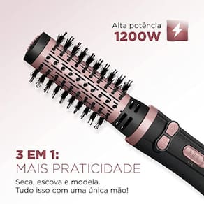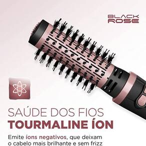 Escova Rotativa Black Rose Mondial ERB-01Com a escova rotativa Black Rose da Mondial garanta um penteado com muito mais brilho e menos frizz.Especificações Técnicas:Modelo: ERB-01Cores predominantes: preto e golden roseVoltagem: bivolt com chave seletoraPotência: 1200WNíveis de temperaturas: 2Funções: modelarTecnologia (emite íons): simRevestimento: cerâmico com tourmalineDescrição do Produto:Cabelos prontos mais rápido, com efeito duradouro e com mais brilho, todos os dias, conte com a Escova Rotativa Black Rose da Mondial tem o revestimento cerâmico com tourmaline íon, que proporciona um cabelo com saudáveis, brilhante e sem frizz.Duplo sentido de rotação gira 360° nos 2 sentidos permitindo uma modelagem perfeita, além de finalizar pontas e franjas, para dentro ou para fora.2 ajustes de temperatura e ar frio - 2 opções de temperatura proporciona melhorCaracterísticas do Produto:Revestimento cerâmico com tourmaline íon: emite íons que selam as cutículas dos fios, eliminando o arrepiado e proporcionando muito mais brilho e maciez.Potência de 1200W: potência de secador com a praticidade de uma escova.Duplo sentido de rotação: modela o cabelo para dentro ou para fora.2 ajustes de temperatura e ar frio: proporcionam melhor desempenho durante a modelagem.Fácil de usar: selecione a temperatura desejada e escove os cabelos da raiz até as pontas acionando o botão de rotação para modelar.Conteúdo da embalagem:1 Escova rotativa1 Manual de instruçõesGarantia: 12 meses pelo fabricante.