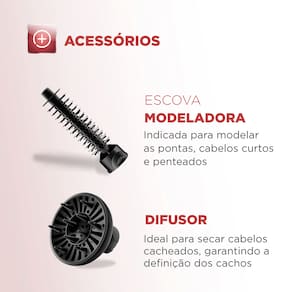 Conheça toda a praticidade que você vai conquistar com a Escova Rotativa Black Rose! Ela é 5 em 1: seca, alisa, modela, define cachos e finaliza franjas e pontas. Você pode produzir o visual que desejar e ainda vai ter um cabelo mais saudável, brilhante e sem frizz, graças ao revestimento cerâmico com Tourmaline Íon. A escova ainda vem acompanhada de 4 acessórios. ESPECIFICAÇÕES TÉCNICAS Cor Rose / Preto Dimensões do Produto 7 x 37x 7 CM Peso do produto 0,800 GR Potência Máxima 1.200 W Rotação 360° nos 2 sentidos Voltagem 127V Nível Temperatura 3 Garantia do Fabricante 1 Ano Cabo Giratório 360° Revestimento Cerâmico Função Seca, Alisa e Modela, Define Cachos Jato de Ar Frio Não RECURSOS Escova 1 x Modeladora Emissão de Íons Tourmaline GTIN 7898578153319 ITENS INCLUSOS Escova Rotativa 1 Capa Protetora 1 Bocal Difusor 1 ALIMENTAÇÃO Voltagem 127V ITENS INCLUSOS Bocal Direcionador 1