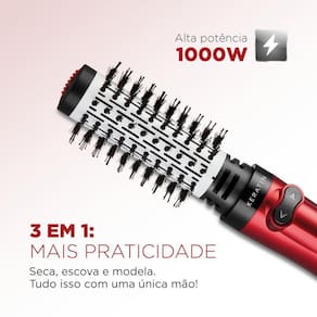 - Escova Rotativa Motorizada: Com seu duplo sentido de rotação, permite modelar os cabelos para dentro ou para fora