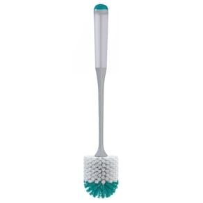 A Escova Sanitária da FlashLimp é muito mais higiênica e prática, pois conta com dispenser para saneantes, acionado por botão, e suporte para melhor armazenamento após o uso.