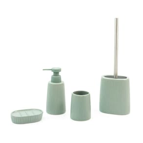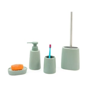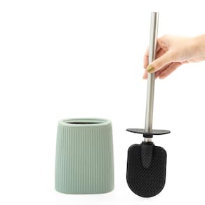 Essa é a escova sanitária de silicone com suporte de resina listras verde sálvia da OIKOS.Prática: seu banheiro muito mais funcional e higiênico, este item garante a limpeza correta do vaso sanitário. Ponta de silicone: o material flexível e o formato arredondado da escova possibilitam uma limpeza mais eficiente. diferentemente da peça convencional, com este item você não precisa se preocupar com cerdas quebradas ou com sujeiras acumuladas na escova.Cabeça flexível: capaz de limpar todas as áreas dentro do vaso sanitário, especialmente as ranhuras. o produto alcança todos os cantinhos da privada.Toque suave: o material de silicone protege o vaso contra arranhões e outros danos.Superfície assimétrica: seu suporte é decorativo e traz para seus cômodos todo o charme da tendência industrial e contemporânea. um item indispensável que também consegue transformar seus ambientes, além de encantar as visitas :)Feita de resina: a poliresina é um material estável e resistente, não deforma e é bem difícil de quebrar. ainda é impermeável e um clássico na decoração, o tom verde fosco também deixa a casa mais moderna e suave. Além da peça avulsa, você encontra outros itens dessa família para deixar sua decoração completa: temos o porta objetos, o porta sabonete líquido e a saboneteira. todos os produtos estão disponíveis na cor verde e preta.Cuidados: para higienizar a escova sanitária basta deixar o produto de molho num balde da OIKOS com água sanitária. depois desse passo, leve para outro recipiente com água (ou deixe por alguns segundos em água corrente) e coloque para secar – esse processo pode ser feito apoiando no próprio vaso sanitário.