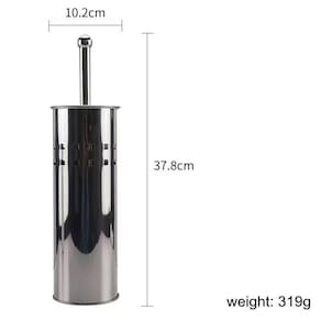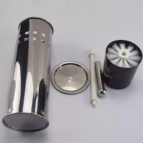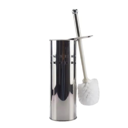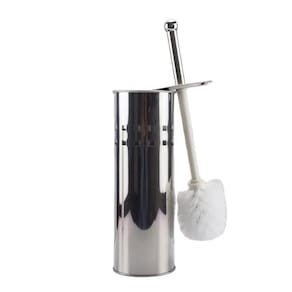 Escova plástica com cerdas flexíveis, ideal para limpar os cantos das privadas. Suporte de aço inox de alta qualidade com aparência sofisticada e elegante.