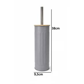 Escova Sanitária Com Tampa de Bambu Fluted 9,5x9,5x38cm Jolitex Cinza -