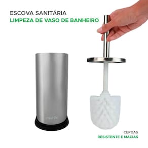 - Uso indicado: limpeza de vasos sanitários e banheiros - material: aço inoxidável e cerdas de alta resistência - comprimento total: 30 cm - Prática e durável, essa escova sanitária é uma excelente opção para manter o banheiro sempre limpo e higienizado. Marca: Não Informado Ean: 7899744098670