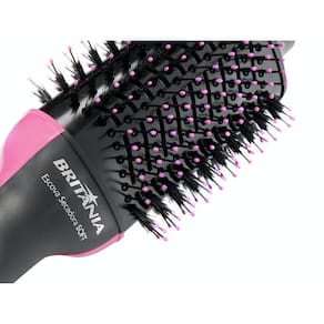 Escova Secadora Britânia Soft BEC02, 3 Temp, 2 Vel - 110V Com a incrível Escova Secadora Soft BEC02 da Britânia você poderá cuidar de seus cabelos com eficiência, qualidade e segurança Essa bela escova secadora irá tornar o processo de secagem de suas madeixas muito mais fácil e prático, pois conta com três velocidades e duas temperaturas, combinadas em um único botão, adequando-se a cada tipo de cabelo sem agredi-lo. Ela possui tecnologia Íon Turmaline, uma proteção extra para os cabelos (principalmente os ressecados e os quimicamente tratados) que conta com a utilização do mineral Turmalina, que potencializa a ação dos íons negativos no cabelo, diminuindo o frizz, a eletricidade estática dos fios, fechando a cutícula, ajudando a modelar os cabelos e garantindo fios muito mais macios e com um brilho radiante. Especificações Tecnicas: Marca: Britânia Modelo: Soft BEC02 Cor: Preto/Rosa Voltagem: 110V Pode ser usado como secador de cabelos; Três opções de temperatura e duas opções de velocidade; Cordão de alimentação de 1,8 metros; Anel pendurador, que facilita o uso; Cerdas com pontas emborrachadas; Cordão giratório (360); Libera íons; Revestimento do tubo de aquecimento em cerâmica; Composição: Plástico e Metal. Garantia: 12 Meses ofertado pelo fabricante Itens Inclusos: 1 Escova Secadora Britânia Soft BEC02, 3 Temp, 2 Vel - 110V Inmetro 1065/2015 Ean: 7891356071003