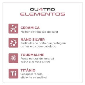 Ele possui 1300 W de potencia, alem de ser uma escova 3 em 1: ela seca, alisa e modela. Alem disso, o produto conta com revestimento em Ceramica, Titanio, Tourmaline e Nano Silver, para transformar os seus cabelos do jeito que quiser.