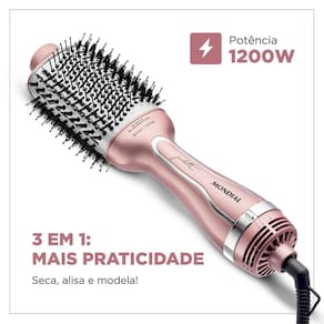 3 Em 1: Seca, Alisa E Modela: O poder do secador aliado à facilidade da escova. Você seca, escova e modela o cabelo ao mesmo tempo, com uma única mão.