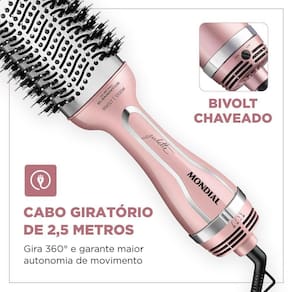 Bivolt: Pode ser utilizada em ambas voltagens: 127V e 220V. Basta ajustar a chave seletora e ter a liberdade para usar sua escova em qualquer lugar!