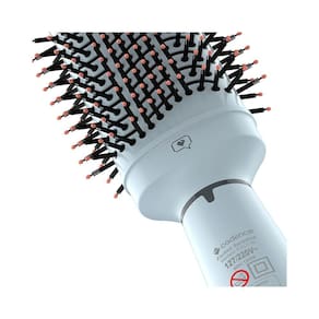 Modelo 4 em 1: Seca, alisa, modela e escova. Possui Íons de Turmalina, garantindo mais proteção para os cabelos. Conta com cerdas duplas, tendo uma modelagem facilitada. Possui 3 temperaturas, garantindo um maior controle. Modelo com Design Ergonômico. Produto Leve e portátil. possui alça para pendurar.