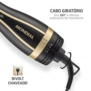 Escova Secadora de Cabelo Mondial ES-15 Gold Argan 3 Em 1 foi criada para facilitar sua vida. Com apenas uma mão, você deixa os cabelos lindos e saudáveis.