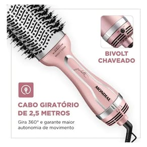 Especificações: - Voltagem Bivolt - Potência 1200w - Cor Golden rose - Ponta fria - 3 Velocidades - Controle de temperatura - Cabo giratório 360° - 3 temperaturas - Funções seca, alisa e modela - Emite íons - Revestimento Cerâmica, Titânio, Tourmaline e Nano silver - Dimensões 38x11x9 Cm