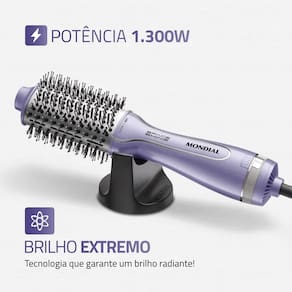 DESCRIÇÃO RESUMIDA A Escova Secadora Slim Mondial ES-21, da linha Space Shine, é a ferramenta ideal para secar, alisar e modelar seus cabelos com agilidade. Com 1300W de potência e tecnologia Tourmaline Íon, ela garante brilho extremo e redução do frizz. Seu design slim e compacto é perfeito para modelar cabelos curtos e franjas com precisão, além de ser Bivolt e fácil de transportar, tornando-a perfeita para viagens. Possui 3 ajustes de temperatura e um cabo giratório de 360° para maior liberdade de movimento.