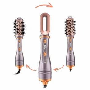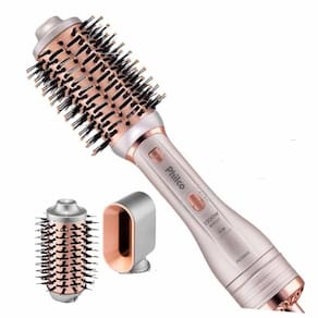 Multifuncional com 3 Acessórios: Um aparelho versátil que se adapta à sua necessidade com três acessórios trocáveis: uma escova oval para alisar e dar volume, uma escova redonda para modelar e um bocal secador para uma secagem direcionada.