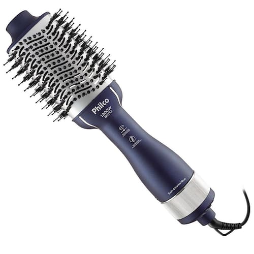 A Escova Secadora Philco Soft Chrome PES16 1300W Bivolt - Azul tem 3 temperaturas e 2 velocidades, revestimento em cerâmica para distribui melhor o calor e atinge maiores temperaturas proporcionando um resultado mais liso, com menos frizz e sem agredir os fios.