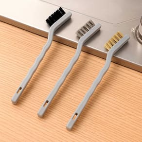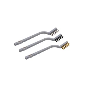 Escovas para limpeza pesada. As escovinhas possuem cerdas robustas e resistentes, perfeitas para tirar sujeiras e manchas dificeis. O conjunto possui 2 escovinhas com cerdas em aço inox e 1 de cerdas em nylon atendendo a todas as tarefas mais dificeis.