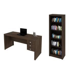 Conjunto para Escritório com Mesa para Computador e Armário Rústico - Tecnomobili