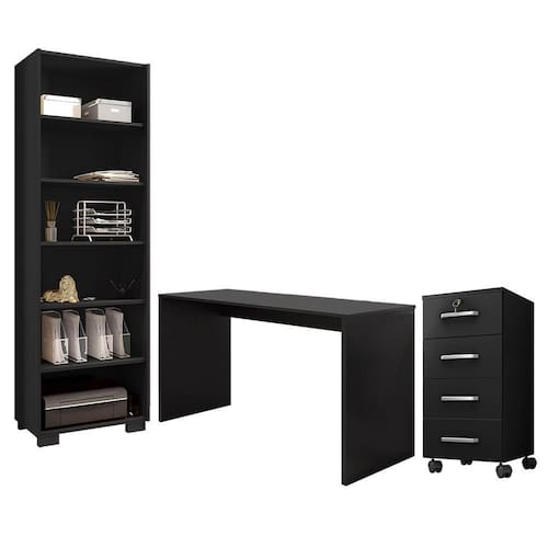 Escritório Completo Gávea Estante Livreiro, Mesa e Gaveteiro - Móveis Leão