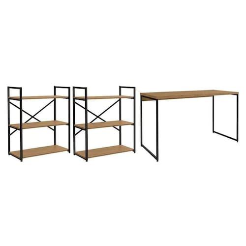 Mesa de Escritório Secretária Industrial LI002 Freijo/Preto - Kappesberg