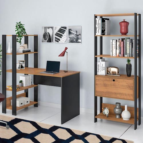 O(a) Escritório Completo Match 1 Porta Pinho/Preto - Artely é produzido em MDF e MDP na escala de brilho Fosca com Textura, e possui um grau de dificuldade de montagem: Médio.