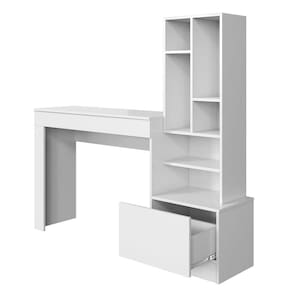 Escrivaninha Office Lion, desenvolvida com o objetivo de estar com você em seus melhores momentos seja ele de estudo ou trabalho, projetada para atender suas maiores necessidades, mantendo a elegância e beleza do produto, o mesmo possui uma biblioteca organizacional lateral que proporciona ao produto um charme excepcional. Produto com revestimento especial MOP PRINT. Possui Suporte para Teclado: Não Possui Passa Cabos: Não Acabamento da Prateleira: Finish Foil Escala de Brilho da Prateleira: Fosco Acabamento da Gaveta: Finish Foil Ambiente Principal: Quarto Complexidade da Montagem: Média: pode ser montado por mais de uma pessoa e/ou necessite de maior conhecimento para montagem Cor: Branco Cor do Produto: Branco Cor Flex: Não Cor Interna: Branco Escala de Brilho: Fosco Escala de Brilho da Gaveta: Fosco Formato: Retangular Gaveta com Chave: Não Itens Inclusos: 1 Escrivaninha, Manual de Montagem e Kit Ferragens Linha ou Coleção: Lion Manual de Montagem e Instalação: https://cdn2.madeiramadeira.com.br/atributo/mobler/755948-3003030-esc-office-c-biblioteca-lion-esquema-de-montagem-157-projeto-25-02-2021.pdf Material da Gaveta: MDP Material da Prateleira: MDP Material Principal: MDP Montagem Flex: Não Necessita Montagem: Sim Origem do Produto: Nacional Peso: 32 kg Peso Máximo por Gaveta: 10 kg Peso Máximo por Prateleira: 5 kg Possui Pés: Não Possui Porta Objetos: Sim Possui Portas: Não Possui Prateleiras: 05 Possui suporte para CPU: Não Quantidade de Nichos: 06 Recomendações de Uso, Manutenção e Limpeza: Para conservar a aparência e a durabilidade do produto: - Utilizar pano macio e úmido; - Não usar solventes ou abrasivos. Sapatas Niveladoras: Sim Sistema de Montagem: Parafusos e Cavilhas. Suporta Até (kg): 30 kg Tamanho: Tipo de Corrediça da Gaveta: Metálica Telescópica Tipo de Puxador da Gaveta: Embutido