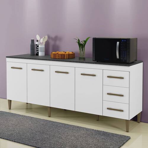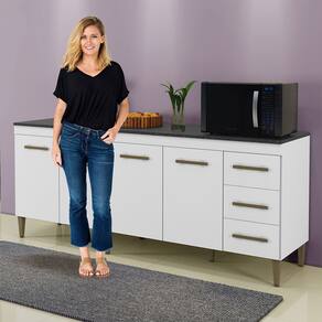 Características: Material Principal: MDF/MDP Material do Puxador: Pvc Gavetas com Chave: Não Possui Espelho: Não Possui Gavetas: Sim Pés/Sapata: Sapatas Acabamento: Pintura U.V Ambiente: Multi-Ambiente Montagem (Pessoas Necessária): Deve ser montado por um montador especializado Escala Brilho: Fosco Tipo Porta: Não Possui Quantidade Prateleiras: 3 Suporte Tv: Não Corrediças: Metálicas Cabideiro: Não Necessita Montagem: Sim