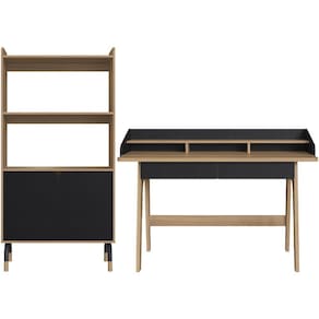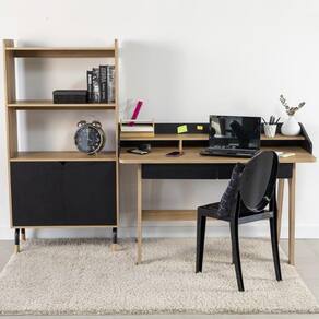 Escrivaninha 2 Gavetas E Armário 27999X27996, foram inspirados no design orgânico e estilo contemporâneo, transformando seu ambiente de trabalho em um lugar leve e confortável. Possui estrutura em MDP de 25 mm e 15 mm, acabamento em pintura BP (fosco). Mesa composta por ampla superfície com furações passagem de cabos, 2 gavetas com corrediças metálicas para guardar acessórios, seus pés são em MDP 25 mm e possuem sapatas emborrachadas. Armário composto por 2 portas com dobradiças metálicas com amortecimento, além de 3 prateleiras sendo 1 interna, pés em tubo de aço com acabamento em pintura epóxi fosca, extremidades dos pés em madeira maciça de eucalipto com sapatas reguláveis. Possui ampla superfície para trabalho e estudos, tornando o espaço mais funcional e organizado. Este móvel chegará na sua casa separado em 2 volumes.