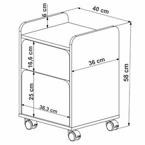 Peso suportado Gaveteiro: 15 kg (5 kg em cada gaveta, 5 kg no tampo)