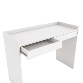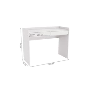 Acabamento: Pintura Brilho | Cor: Branco | Corrediças: Telescópicas | Garantia: 3 meses para defeito de fabricação | Matéria-prima: MDP | Peso máximo suportado: 30kg | Peso suportado por gaveta: 6 kg | Quantidade de gavetas: 2 | Sistema de montagem: Parafuso Philips | Quantidade de caixas: 1 | Duração da Garantia: 3 meses | Montagem: Necessita montagem | Tipo de Garantia: Garantia do fabricante | Altura: 80 cm | Profundidade: 45 cm | Largura: 45 cm | Comprimento: 105 cm | É em formato L: Não | Requer montagem: Sim | Materiais da escrivaninha: MDP