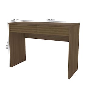 A escrivaninha Samambaia é a escolha perfeita para quem busca um móvel elegante e funcional para seu escritório ou home office. Com seu design moderno e linhas suaves, ela se adapta a qualquer ambiente, trazendo um toque de sofisticação e organização. A escrivaninha possui duas gavetas espaçosas, ideais para armazenar documentos, materiais de escritório e outros objetos pessoais. Além disso, seu tampo é amplo e resistente, proporcionando espaço suficiente para acomodar um computador, monitor, teclado e outros acessórios. Ela é ideal para quem precisa de um espaço funcional e organizado para trabalhar ou estudar. Produto Montado: Sim Acompanha Manual de Instalação: Sim Ambiente Principal: Escritório codigo_ean: 7900288016218 Complexidade da Montagem: Média: pode ser montado por mais de uma pessoa e/ou necessite de maior conhecimento para montagem Cor: Freijó Cor do Produto: Freijó Escala de Brilho: Fosco Espessura do Tampo: 2,5 mm Formato: Retangular Gaveta com Chave: Não Itens Inclusos: 01 Escrivaninha, Manual e Kit Ferragens Linha ou Coleção: Samambaia Manual de Montagem e Instalação: https://product-hub-prd.madeiramadeira.com.br/969126/documents/69caa67a-ba72-42d8-894b-a977aaede03c2535810342817308158753092.pdf Marca: CabeCasa MadeiraMadeira Material Principal: MDP Necessita Montagem: Sim Origem do Produto: Nacional Peso: 29,3 kg Quantidade de Gavetas: 02 Gavetas Sistema de Montagem: Parafusos, Cavilhas e Minifix Tipo de Corrediça da Gaveta: Metálica Telescópica Tipo de Escrivaninha: Escrivaninha Penteadeira