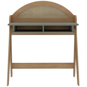 O destaque visual fica por conta do painel arredondado com pintura 3D no acabamento palha, que adiciona um toque exclusivo e aconchegante à decoração. Além da estética diferenciada, a Escrivaninha Ceci oferece praticidade com seus dois nichos estrategicamente posicionados garantem espaço extra para organizar livros, materiais de estudo ou objetos decorativos, mantendo tudo sempre ao seu alcance.