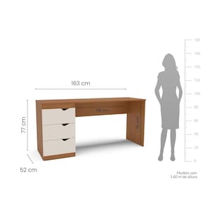 A escrivaninha Porto é a escolha perfeita para quem busca funcionalidade e estilo em home office ou escritórios, com design moderno que valoriza qualquer ambiente. Com 163 cm de largura, 77 cm de altura e 52 cm de profundidade, ela oferece espaço ideal para produtividade e organização, contando com 3 gavetas práticas e corrediças metálicas simples que garantem durabilidade e facilidade de uso. Sua pintura UV proporciona maior resistência a riscos e um acabamento sofisticado, mantendo a beleza da peça por muito mais tempo. Além disso, toda a linha Porto está cadastrada para quem deseja complementar o ambiente com gaveteiro, penteadeira, cômoda, guarda-roupa e mesa de cabeceira, criando um espaço harmonioso e funcional. Produto Montado: Sim Acabamento do Tampo: Pintura UV Acompanha Manual de Instalação: Sim Ambiente Principal: Escritório codigo_ean: 7900288211811 Complexidade da Montagem: Baixa: pode ser montado por uma pessoa sozinha Cor: Creme/Freijó Cor da Base: Marrom Cor do Produto: Creme/Freijó Cor do Tampo: Marrom Cor Interna: Freijó Dobrável: Não Escala de Brilho: Semi-Fosco Espessura do Tampo: 15 mm Gaveta com Chave: Não Itens Inclusos: 1 Escrivaninha, Kit de Ferragens, Manual de Montagem e Termo de Garantia Lado de Montagem: Esquerdo Linha ou Coleção: Porto Manual de Montagem e Instalação: https://product-hub-prd.madeiramadeira.com.br/949759453/documents/d5064eb0-78a8-4223-8008-5fe4a0008b413131129622417550174803369.pdf Marca: Politorno Material Principal: MDP Modelo Infantil: Não Montagem Flex: Não Necessita Montagem: Sim Origem do Produto: Nacional Peso: 25,63 kg Peso Máximo por Gaveta: 5 kg Posição da Gaveta: Lateral Possui Acabamento na Parte de Trás: Não Possui Borda Arredondada: Não Possui Caixa de Tomada: Não Possui Espelhos: Não Possui Estante: Não Possui Gaveta para Pasta Suspensa: Não Possui Gaveteiro: Não Possui Porta Objetos: Não Possui Vidro: Não Quantidade de Gavetas: 04 Gavetas Recomendações de Uso, Manutenção e Limpeza: Utilize um pano macio umedecido com água e sabão neutro, seguido de pano seco. Não utilize produtos químicos ou abrasivos para limpeza, pois estes danificam o revestimento do móvel. Sapatas Niveladoras: Sim Sistema de Montagem: Cavilha, Parafuso, Minifix e prego. Suporta Até (kg): 20 kg Suporta Braço Articulado: Sim, somente de encaixe Tipo de Corrediça da Gaveta: Metálica Simples Marca: Não Informado