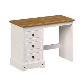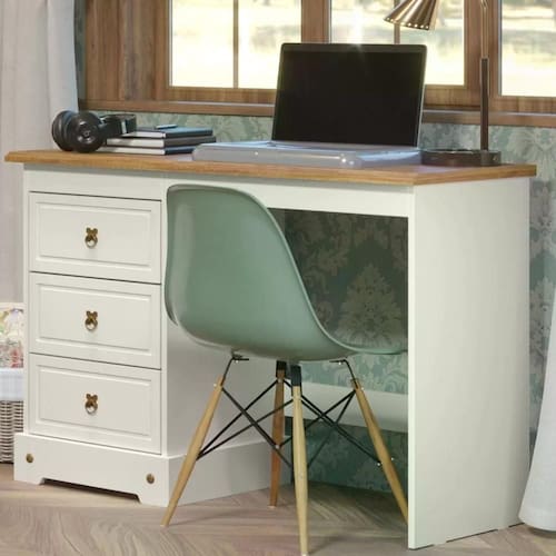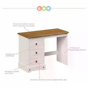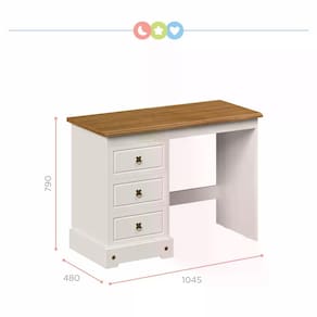 Escrivaninha 3 Gavetas com Tampo em Madeira Maciça Smile Creme/Carvalho. Especializada em móveis, a Serpil prioriza a segurança, o conforto e o bem-estar, por isso desenvolve produtos que seguem as normas de segurança, garantindo a qualidade dos móveis. A Escrivaninha Smile conta com três gavetas e corrediças metálicas. Sua estrutura tem corpo em MDF 15mm e tampo em madeira maciça de Pinus 25mm. Sendo assim um móvel durável e de alta qualidade. A Escrivaninha Smile é perfeita para o seu quarto ou escritório com estilo meio retrô ou vintage, ela une funcionalidade e beleza em um só produto, deixando o ambiente muito mais confortável e bonito.