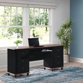 Procurando uma escrivaninha com gavetas para o seu escritório ou home office? A Escrivaninha Linz Office é a escolha ideal, pois com seu amplo tampo em madeira maciça, 6 gavetas com corrediças telescópicas, você terá espaço de sobra para armazenar papéis, canetas e outros materiais de escritório. Além disso, possui suporte para teclado, permitindo uma superfície de trabalho mais ampla e confortável e detalhes divisores de ambiente. Os pés e base em madeira maciça e puxadores metálicos dão um toque de elegância e requinte ao móvel. Produzida em Madeira Maciça para tons amadeirados em verniz e MDF nos tons coloridos com acabamento laca, garantindo qualidade e durabilidade, para que você possa aproveitar ela por muitos anos. A escrivaninha retro é uma excelente escolha para quem procura exclusividade, sofisticação e requinte.