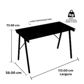 Escrivaninha ANM2004M Anima Office Tampo de Vidro Preto 113 x 58 cm Base Metal Pintura Époxi Preta