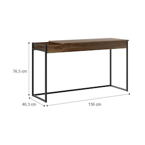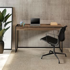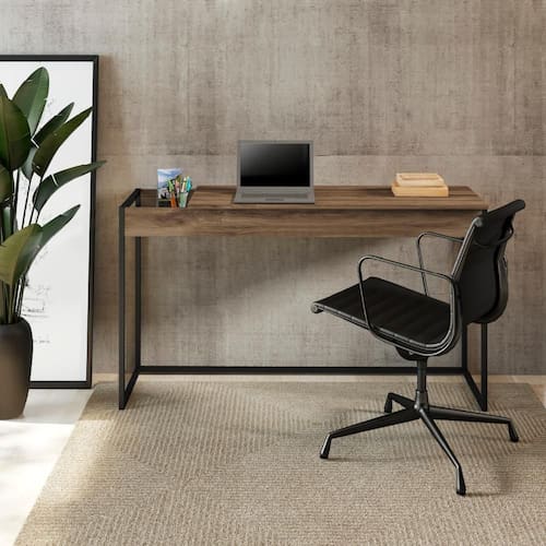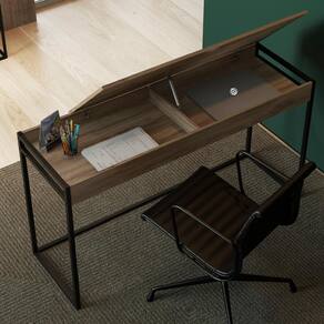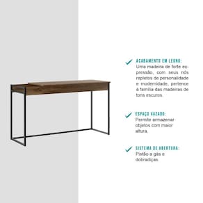 A Escrivaninha Carraro faz parte da linha Home Design, possui estilo contemporâneo e é composta por tubos de aço e peças em madeira. A estrutura permite guardar objetos no seu interior, facilitando a organização. E o tampo não encobre o lado esquerdo, deixando um espaço vazado, ideal para armazenar objetos com maior altura.