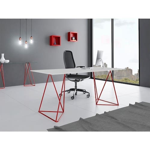 Escrivaninha Bela Vista Cavalete Tampo Branco Base Ferro Vermelho - Cor: Preto